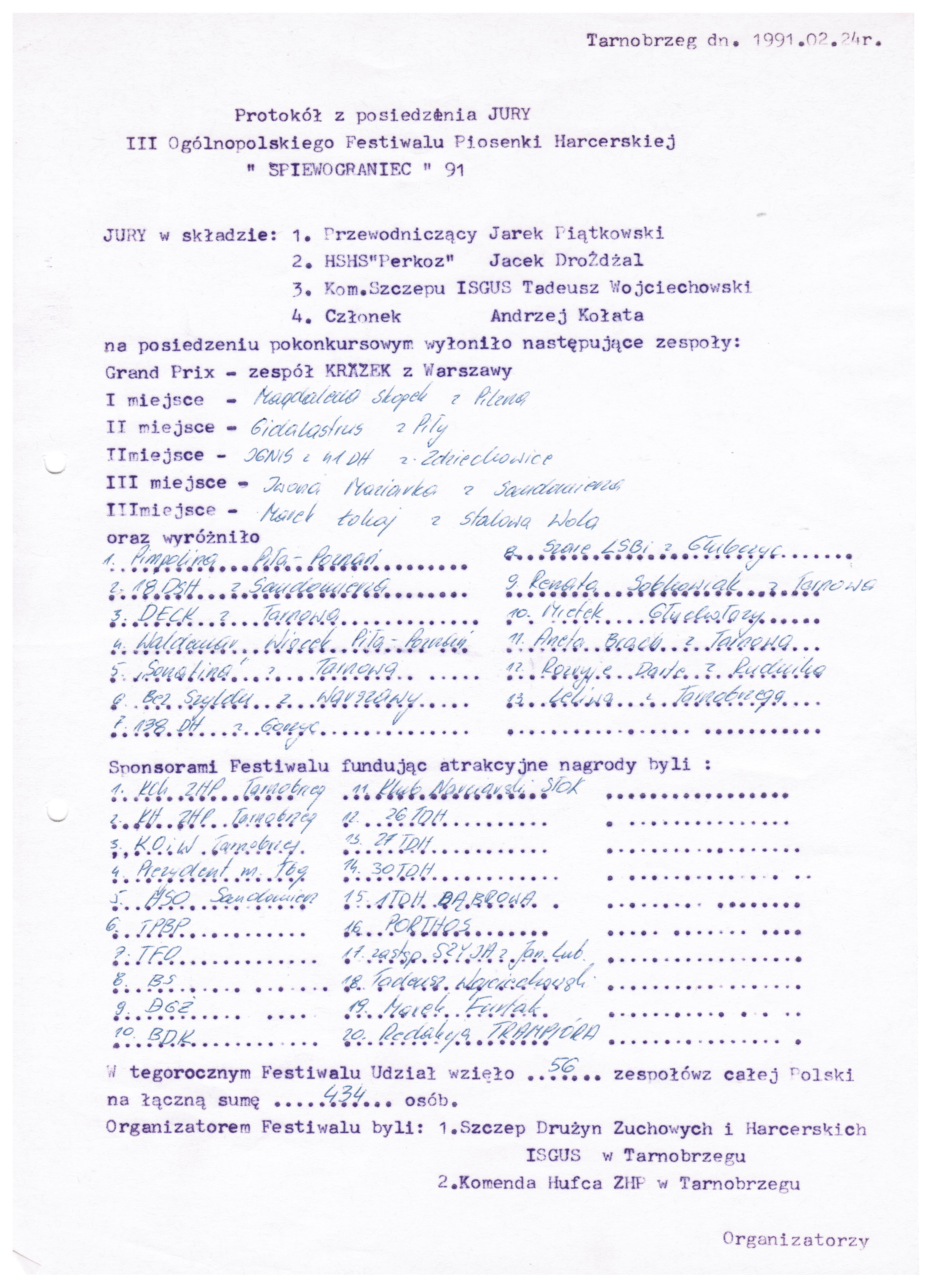 III OFPH - 1991 r.- PROTOKÓŁ JURY