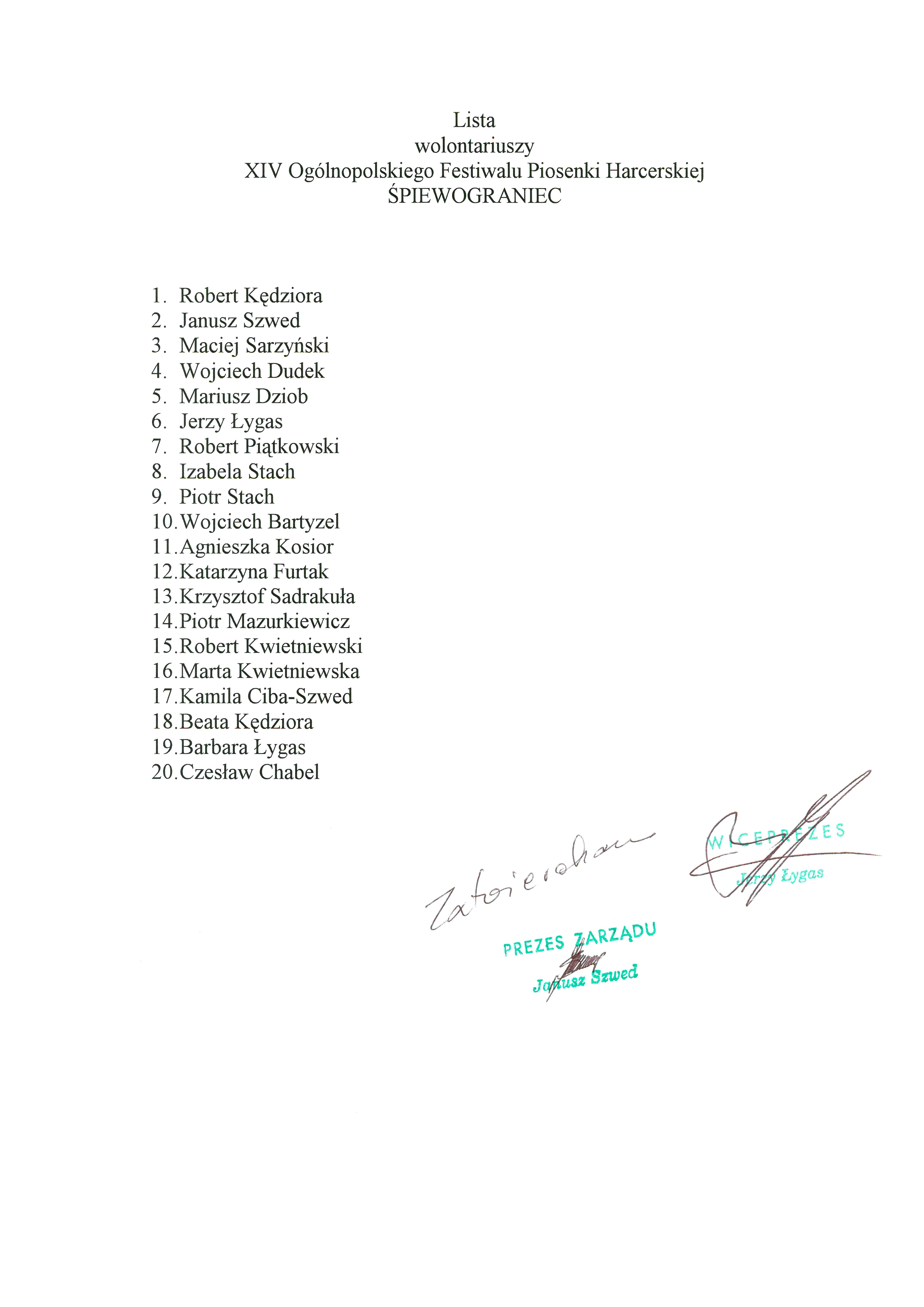 XIV OFPH - 2007 - LISTA WOLONTARIUSZY